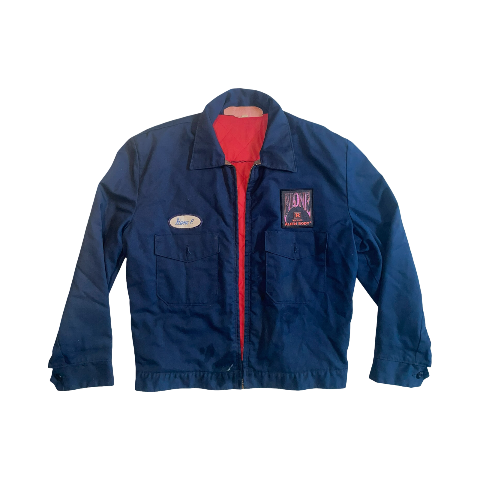 sewn "Alone" patch on front, with sewn Alien Body patch on back.